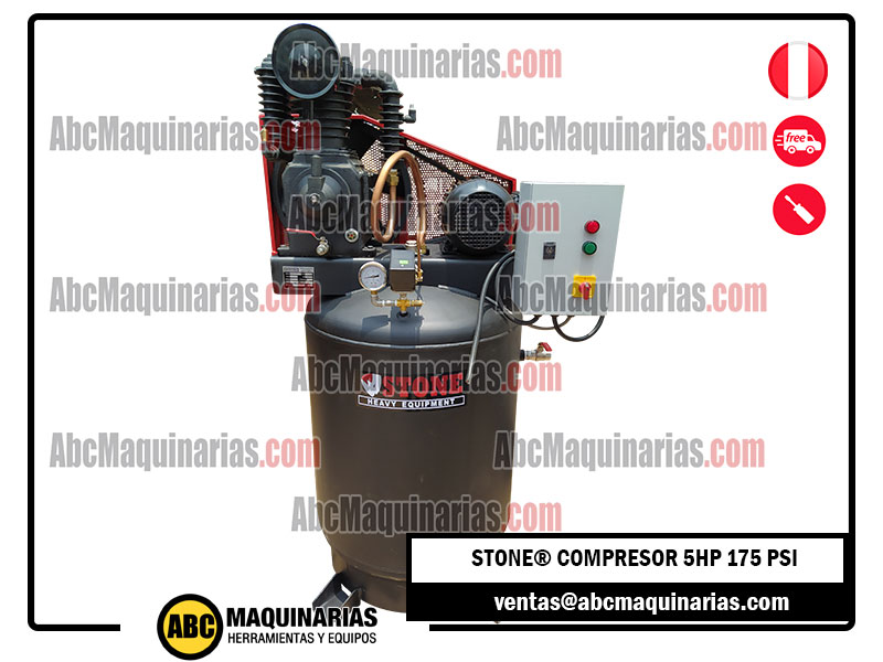 Compresor eléctrico de doble etapa (175PSI) STONE® con cabezal de fierro fundido y motor WEG/SIEMENS®.