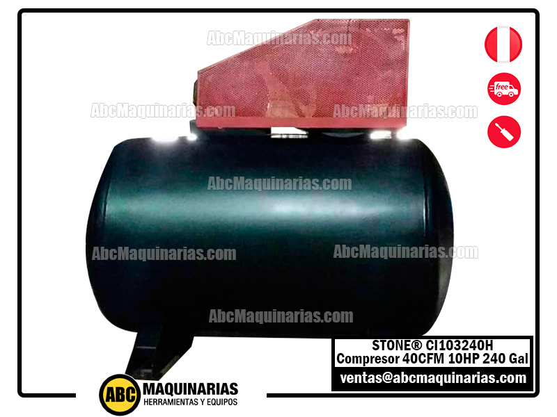 Compresor eléctrico de doble etapa STONE® con cabezal de fierro fundido, motor Weg® IP55 para servicio pesado.