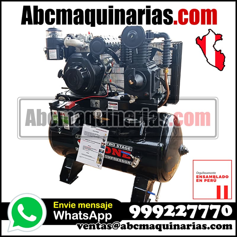 Compresor autónomo de doble etapa STONE® con motor petrolero SHERMAN® para servicio rudo. USO EN CAMIONETA