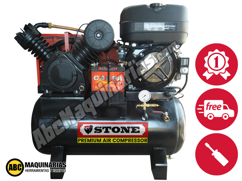 Motocompresor compacto a Diesel STONE® con cabezal de fierro fundido y motor Lombardini®.